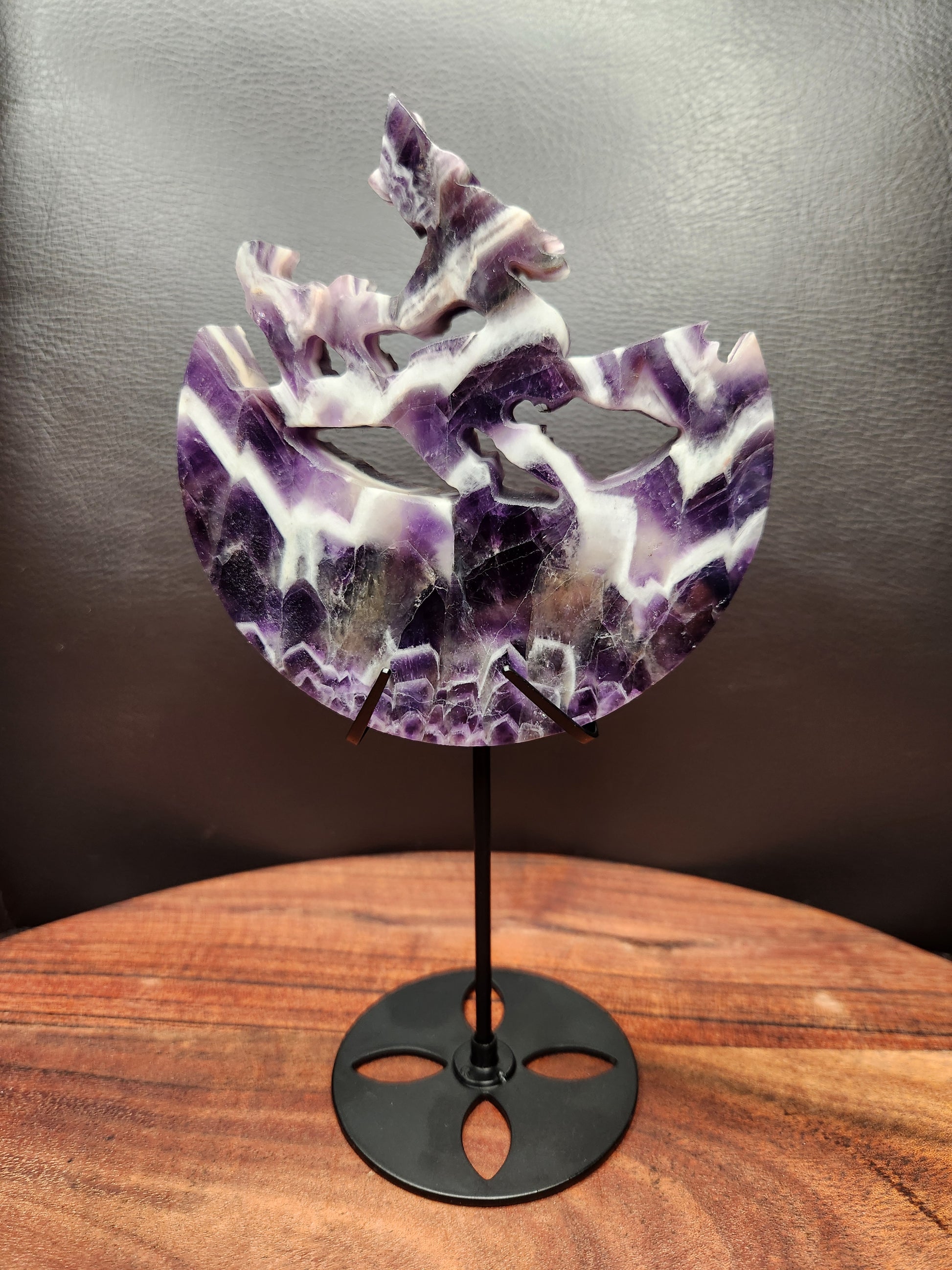 Dream Amethyst With & Cat flying by the Moon Carving.