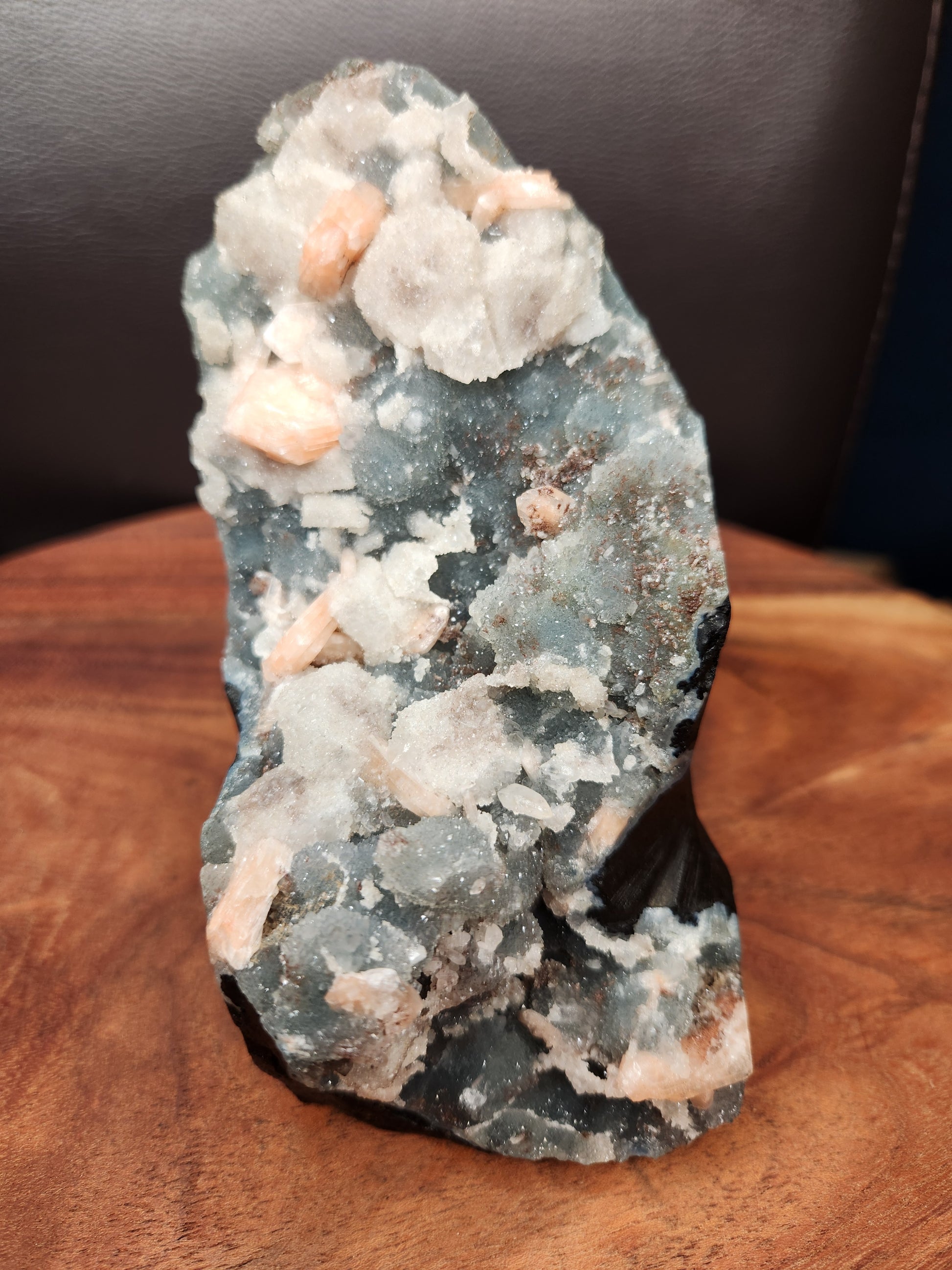 Heulandite with Peach Stillbite Blades on Blue Chalcedony Specimen
