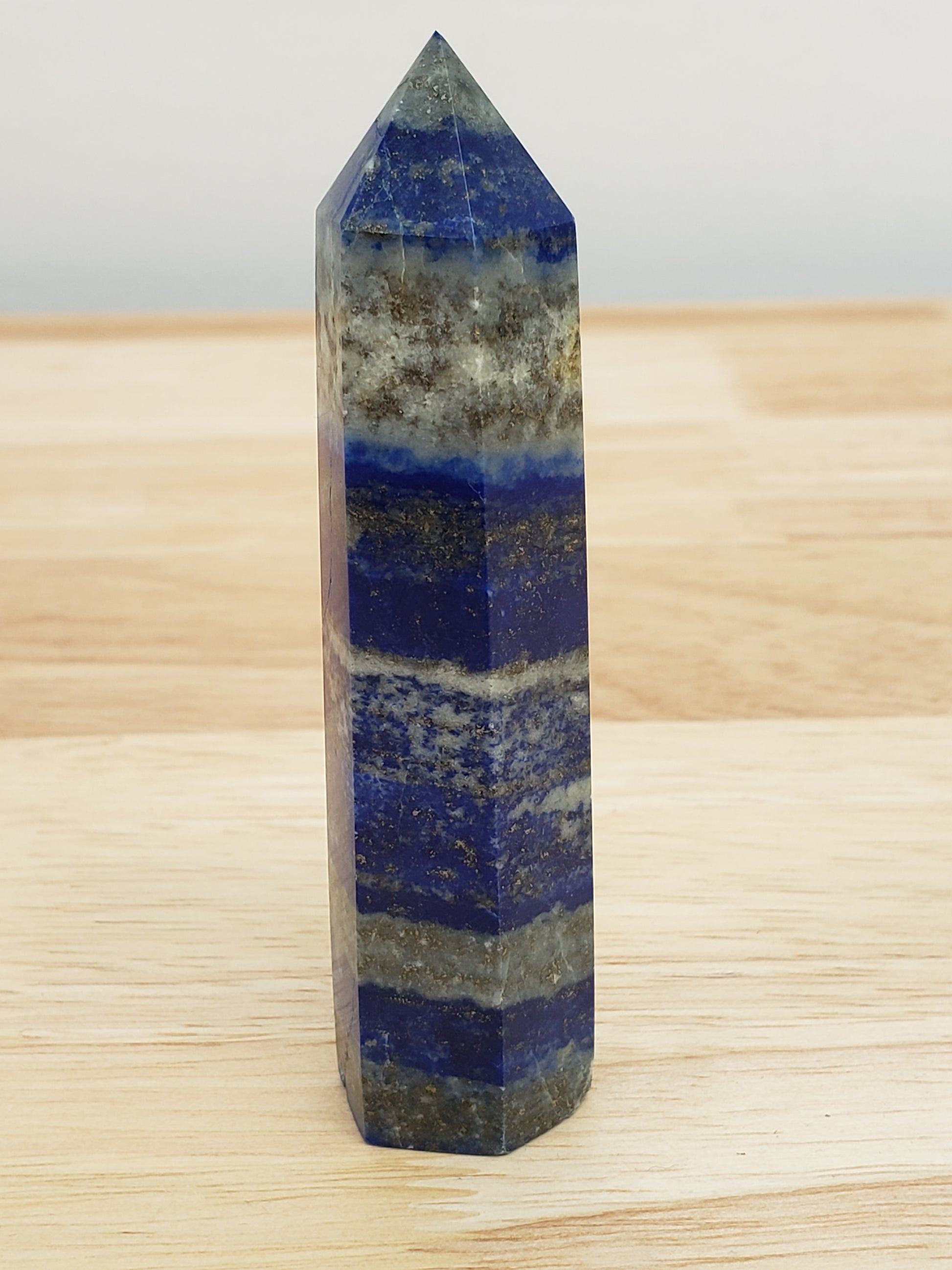 Lapis Lazuli S Point is a striking deep blue crystal with golden pyrite flecks, known for its connection to inner truth and wisdom. This smaller pointed specimen is believed to enhance intuition, calm the mind, and support clear communication. Perfect for meditation, energy work, or displaying in your sacred space. A timeless stone cherished for centuries across many cultures.