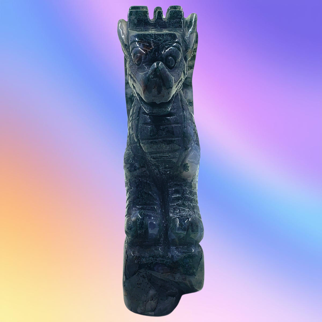 ☆ Crafted from genuine moss agate, this Mini Dragon Carving showcases intricate detailing that highlights the stone’s natural green inclusions ☆