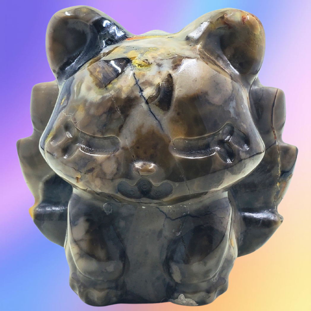 ☆ Volcano Agate Ninetails Fox Carvings are available in five distinct variants, each showcasing the natural variations and rich textures of volcano agate stone ☆